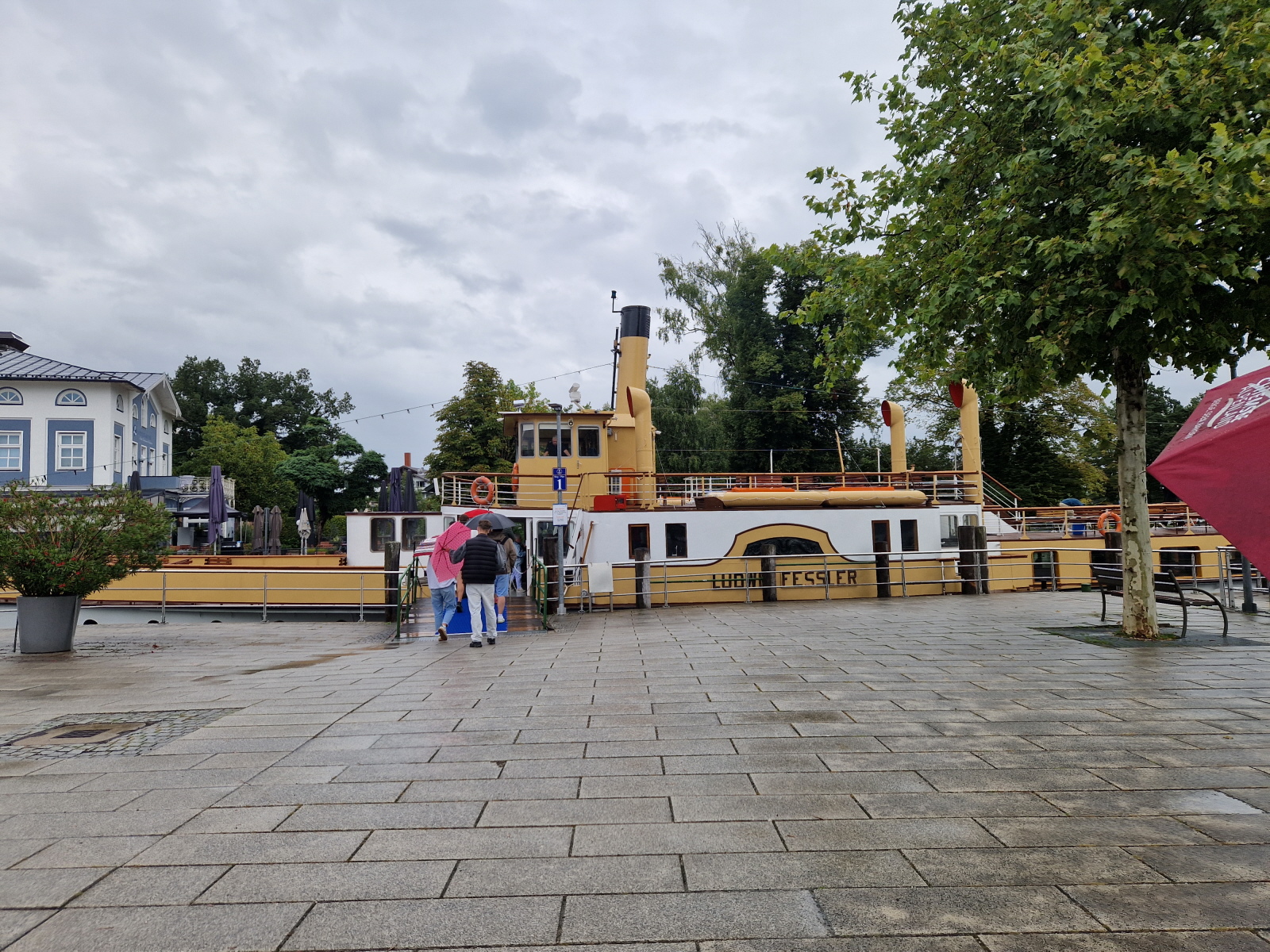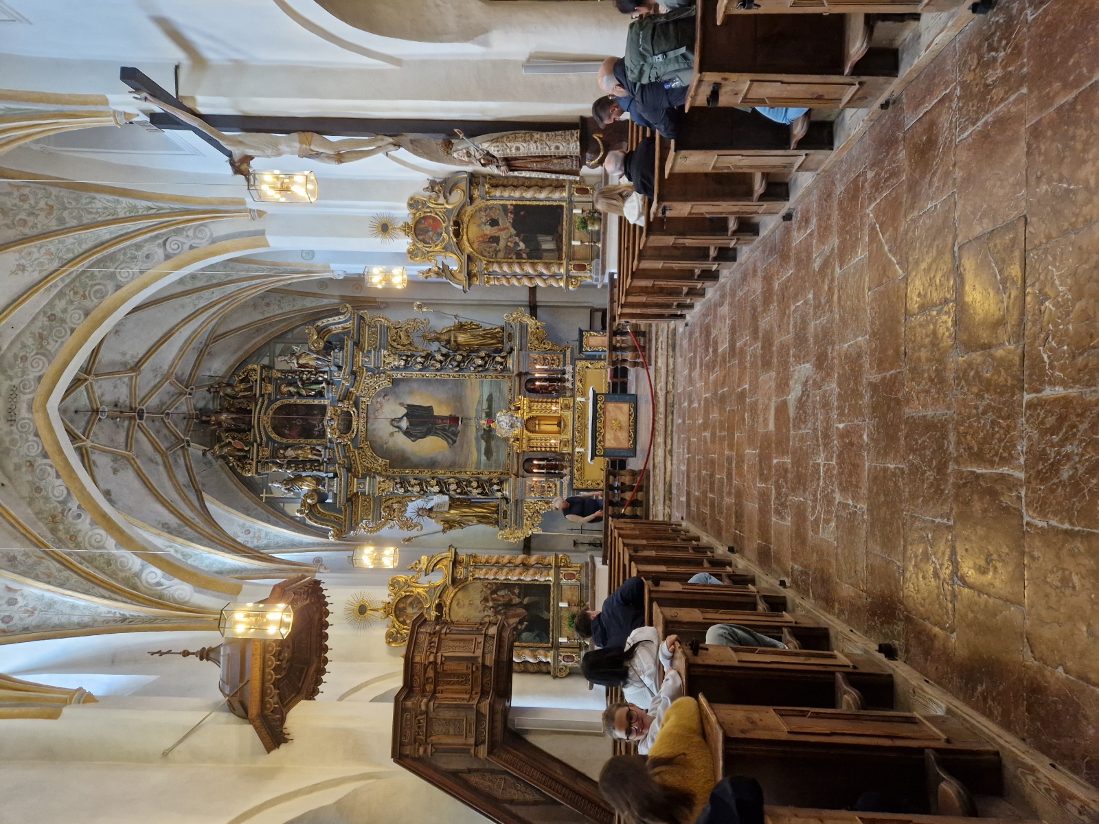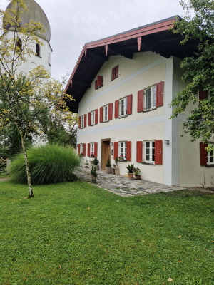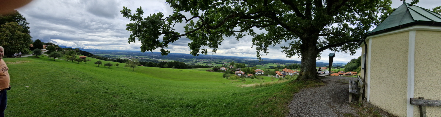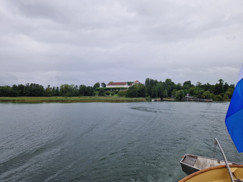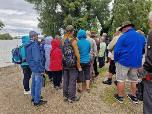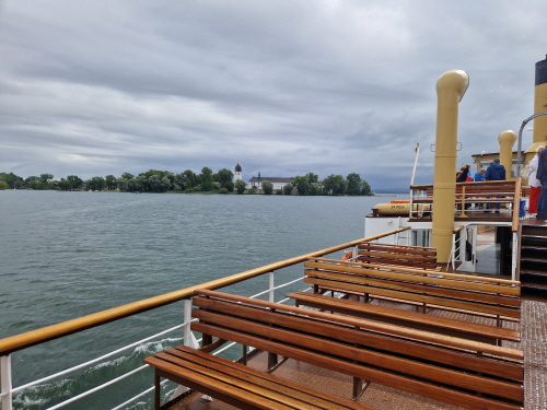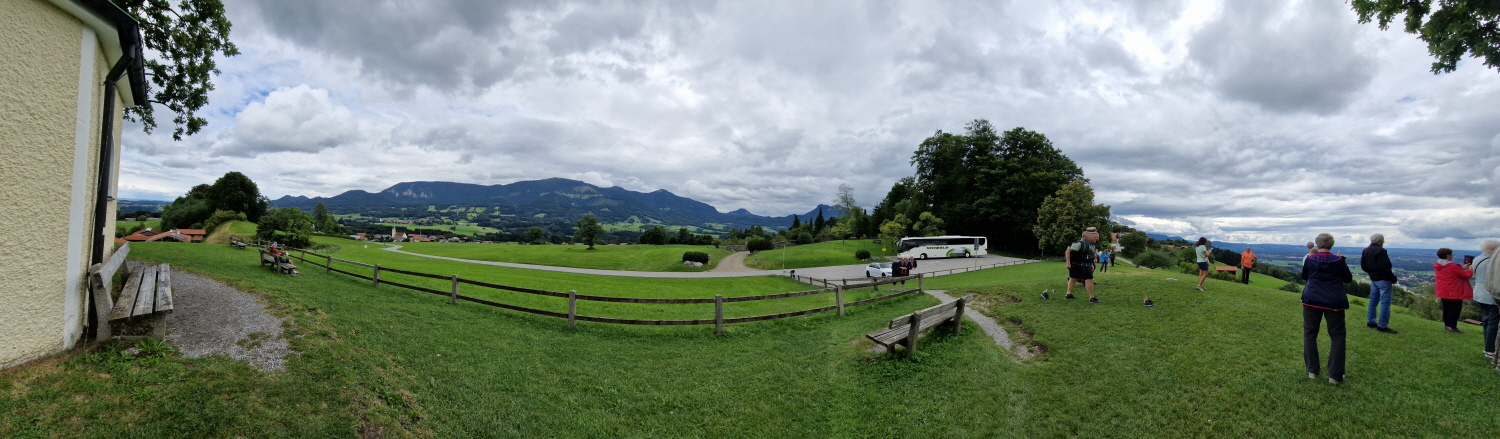 Die Technische Hochschule wird aktuell noch vergrößert, hat aktuell 6000 Studierende und bietet über 50 Studiengänge an. Der Bahnhof war in Rosenheim sehr wichtig, ist der siebtgrößte Personenbahnhof in Bayern. Der erste Halt einer Bahn war 1858 zwischen München und Salzburg, 1870 erwies sich aber der Bahnhof schon zu klein, und so musste er nahe dem Zentrum neu gebaut werden. Der alte Bahnhof (Lokschuppen) ist heute bekannt für Ausstellungen zur Zeit findet die Titanic Ausstellung statt. In Rosenheim gibt es außerdem zwei Brauereien, Auer und Flötzinger, diese ist in Familienbesitz seit 1543. Auf dem Rosenheimer Herbstfest betreibt die Familie das größte frei aufbaubare Festzelt Europas. Am sogenannte Innspitz treffen die Flüsse Inn und Mangfall zusammen und werden zum Inn. Dann ging es vorbei am Simsee, und zum Ort Riedering, das erstmals 788 urkundlich erwähnt wurde. Außerdem befindet sich hier das Ensemble Chiemgauer Volkstheater. Der Ort ist auch Heimat vieler Theater und Schauspieler wie Max Brückner. Weiter ging es vorbei an der Ratzinger Höhe, Wohnort der Mutter vom verstorbenen Papst Benedikt. Weiter vorbei an der Wallfahrtskirche St. Salvator, deren Baubeginn im 12 Jhd. war. Die erste urkundliche Erwähnung der Gemeinde Rimsting erfolgte 1189. In Prien gibt es außerdem eine Dampf Strassenbahn aus dem Jahr 1887, mir der man vom Bahnhof bis hinunter zum Hafen fahren kann. Weiter ging es dann mit dem 1926 gebauten und nun umgebauten Radmotorschiff zur Fraueninsel Sie ist die zweitgrößte Insel des Chiemsee nach der Herreninsel und der Krautinsel Es leben etwa 240 Insulaner auf der Fraueninsel. Das Kloster ist Wallfahrtsort der seligen Irmengard, Schutzpatronin des Chiemgaus. 782 wurde das Kloster von Herzog Tassilo III gegründet. Es gab bis 1982 ein Gymnasium mit Internat Der nordwestlich vor der Kirche befindliche Glockenturm Campanile zählt zu den Wahrzeichen des Chiemgaus und stammt aus dem 12. Jahrhundert. In der Inselmitte erbaute man auf der abgerissenen Martinskirche eine Kriegerged ächtniskapelle. Dort stehen auch zwei vermutlich mehr als 1000 Jahre alte Linden, die Tassilolinde und die Marienlinde. Auf der Wiese neben den Linden, wurde erst kürzlich mittels neuester Technik ein Oktogramm einer noch älteren Kirche unter den Ruinen der Martinskirche Entdeckt. Nach der Führung konnte sich jeder bei den vielen Fischerstüberl einen frischen geräuchten Fisch oder eine Fischsemmel kaufen. Nach einem Einkauf im Klosterladen ging es mit dem Schiff zurück nach Prien. Mit dem Bus ging es weiter auf der deutschen Alpenstrasse entlang nach Bernau, Aschau, weiter nach Frasdorf und nach Törwang zur Aussichtskapelle Samerberg. Das Hochtal ist ca 6 km breit und bietet einen sagenhaften Rundumblick zum Simssee und Chiemsee auf der anderen Seite die Hochriesgruppe. Hier machten wir ein Gruppenfoto. Dann ging es weiter nach Neubeuern. Der Ort wurde 1981 zum schönsten Dorf Deutschlands gewählt. Der Marktplatz besteht aus vielen malerischen Häusern mit alpenländischen Fassaden. 788 wurde Neubeuern erstmals urkundlich erwähnt Das Schloss beherbergt ein Gymnasium mit Internat. Beim Hofwirt kehrten wir zu Kaffee und Kuchen ein.