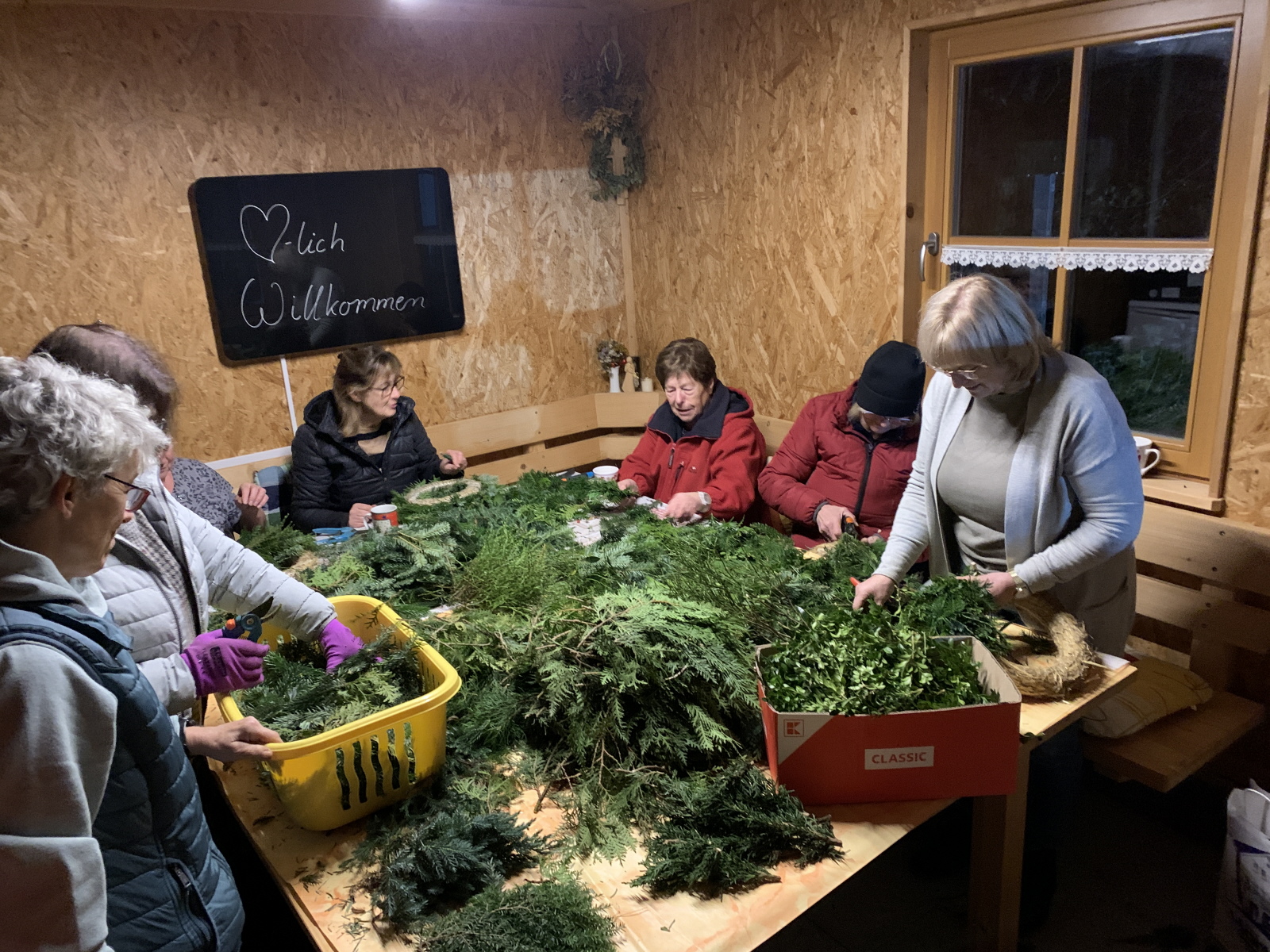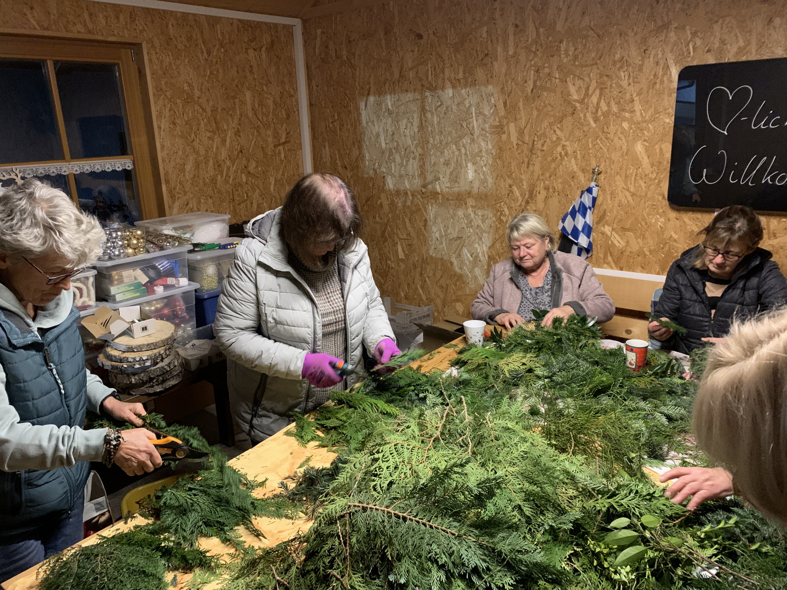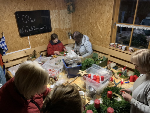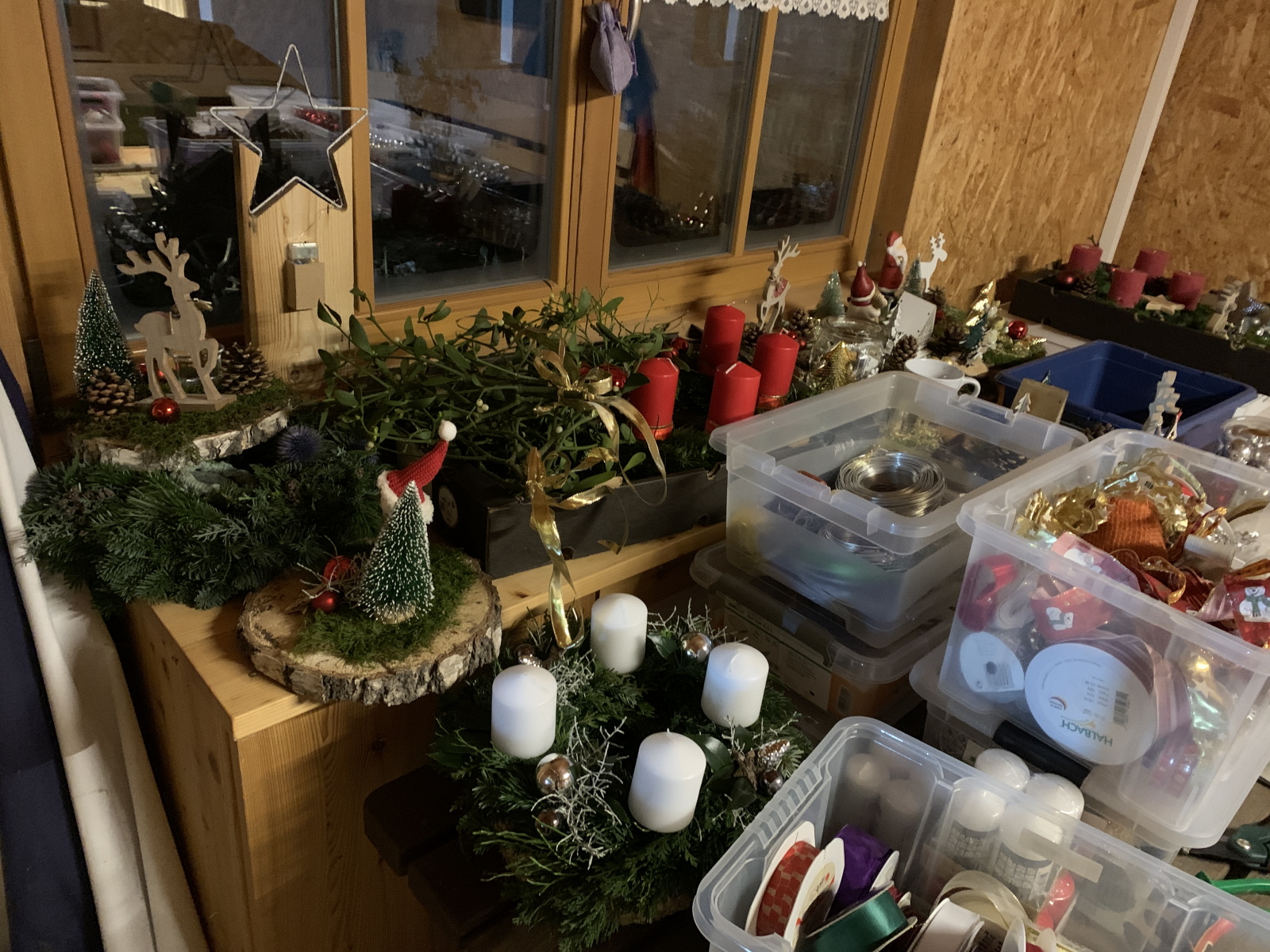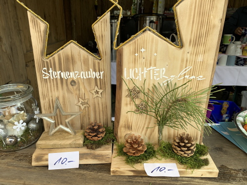 Am Sternzaubermarkt hat sich natürlich auch der Gartenbauverein wieder mit Glühwein- und Bratwurstverkauf beteiligt. Wie schon die letzten Jahre haben wir auch wieder ein paar Advents- und Türkränze zum Verkauf angeboten, außerdem wieder gebastelte Holzdeko von Franz Hautzinger.