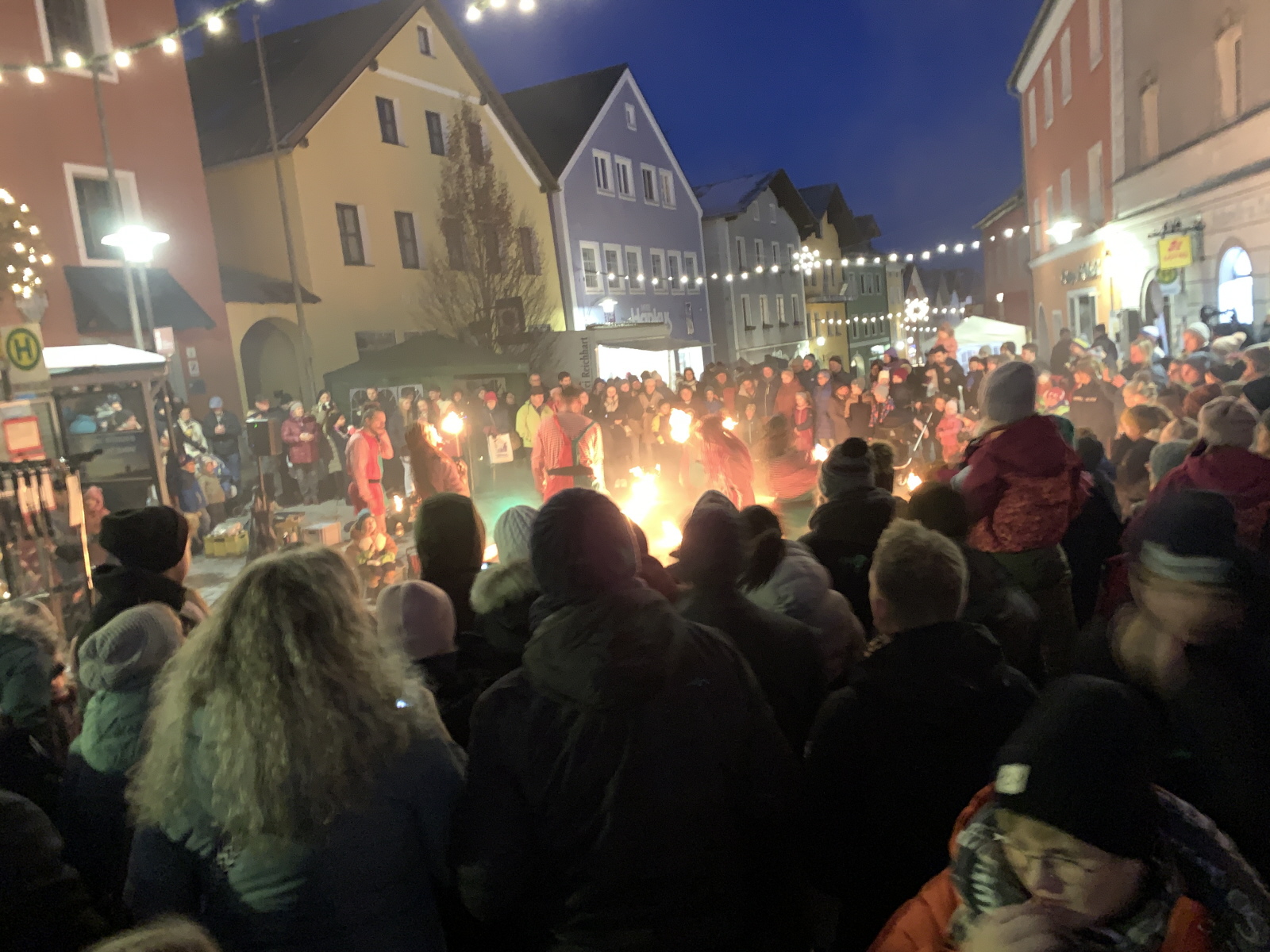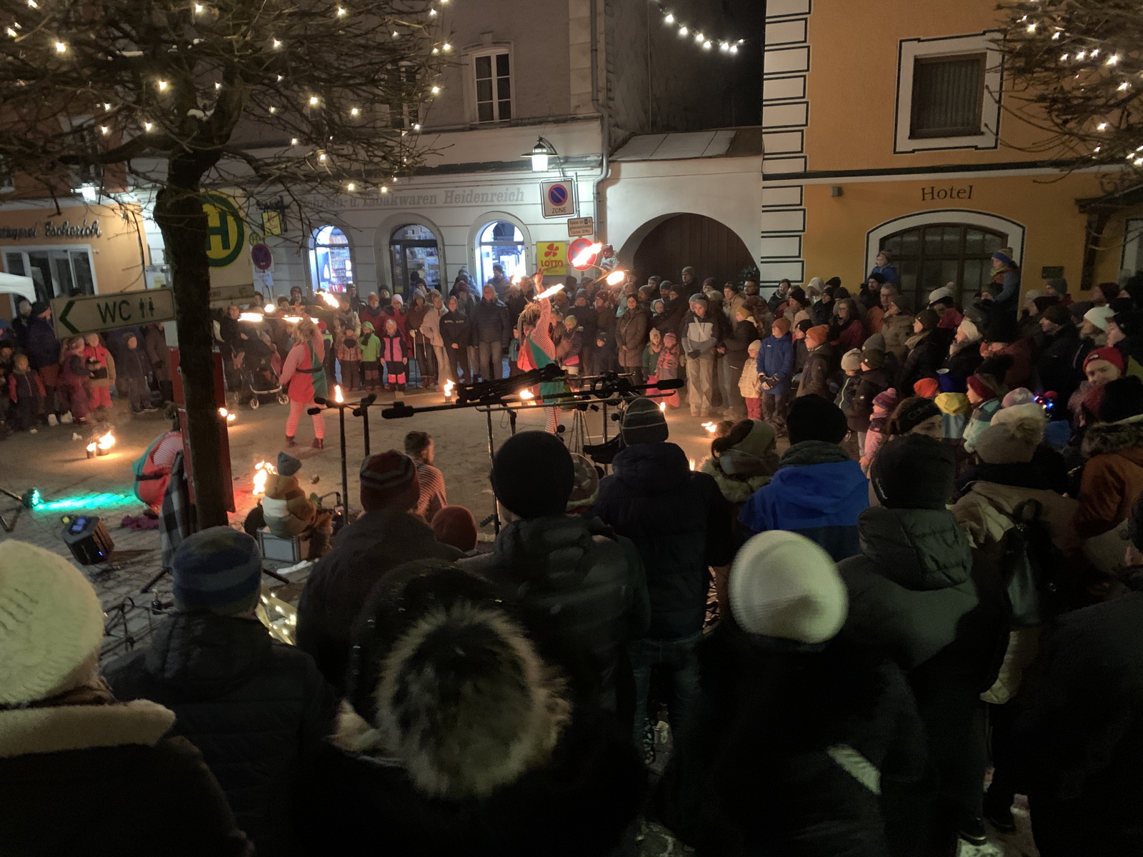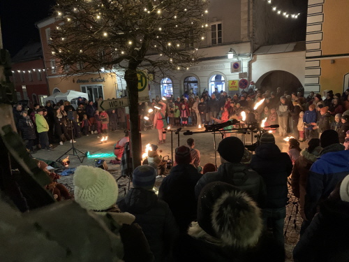 Der offizielle Start war kurz nach Mittag mit der Blaskapelle, die Sterntalermädchen liefen wieder durch die Marktstraße und verteilten Geschenke an die Kinder. An der Raiffeisenbank konnten die Besucher an den Wunschbäumen Wünsche erfüllen. Am Abend kam dann die Avalon Feuershow mit ihrem Programm und auch noch einige Besucher.