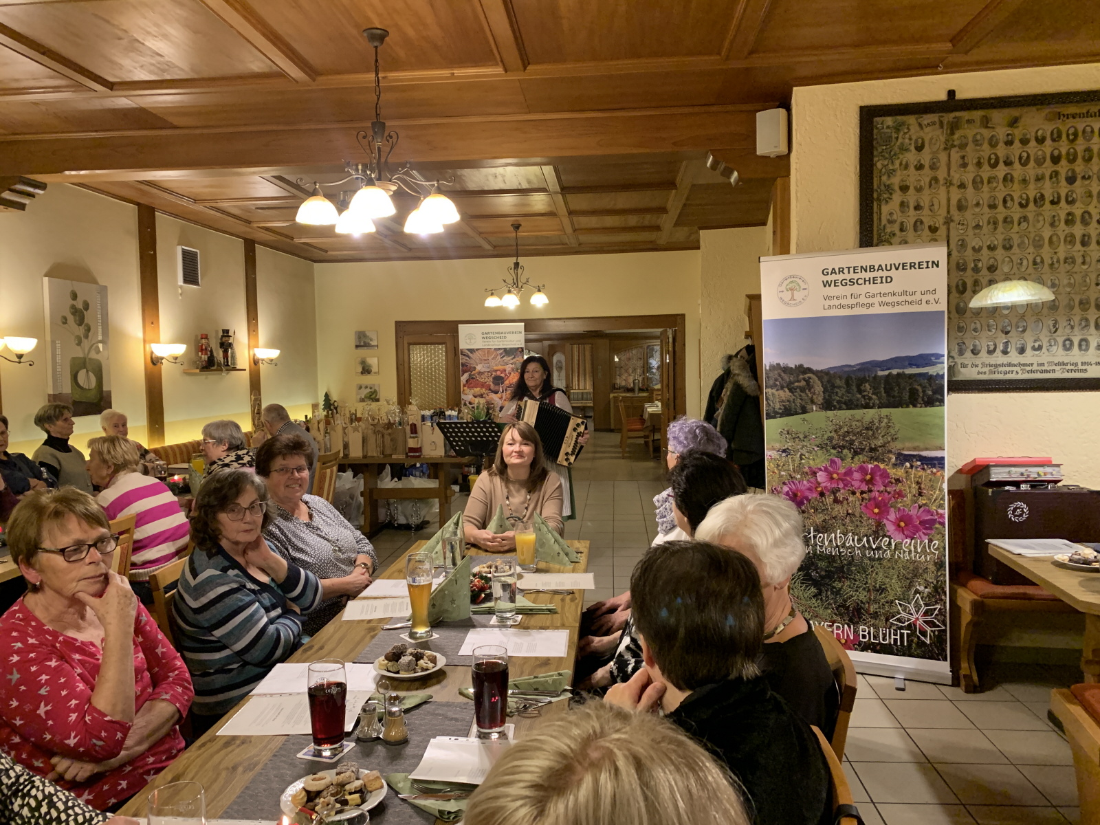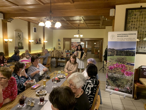 Mit weihnachtlicher Musik von Monika Kieninger konnte die Vorsitzende Bonalinde die Mitglieder des Gartenbauvereins wieder zu einer gemütlichen Advents- oder Weihnachtsfeier begrüßen. Sie freute sich, dass wieder so viele Mitglieder gekommen sind und bedankte sich für die Unterstützung im vergangen Jahr bei allen Helferinnen und Helfern fürs Kuchenbacken, Kräuterbuschenbinden und vielem mehr. Irmgard Hautzinger bedankte sich bei Bonalinde für die Arbeit im vergangen Jahr mit Kissen für die neue Eckbank. Der Dank geht auch an viele örtliche Geschäfte und Unternehmen für die Spenden für die Tombola.